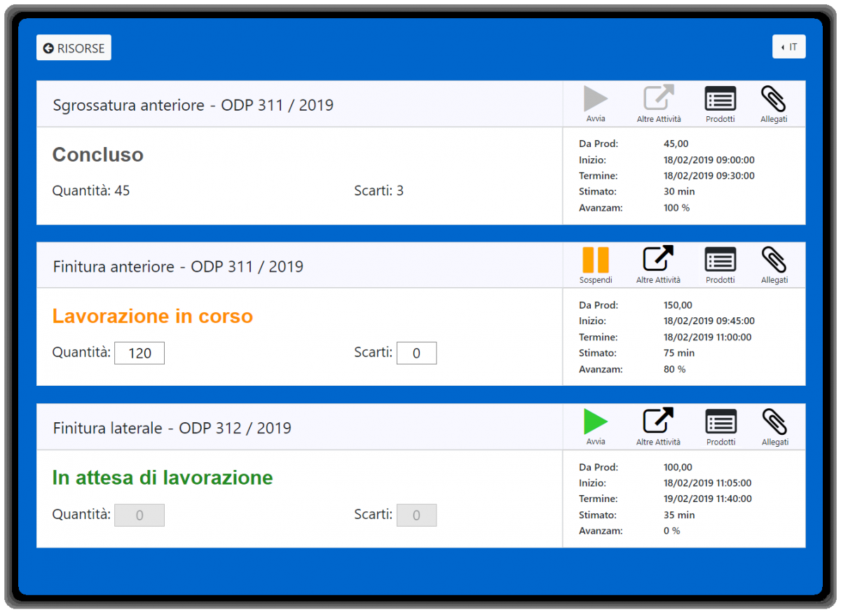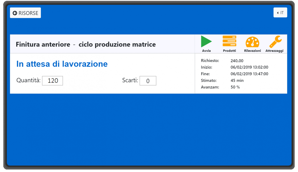 Applicazione per la rilevazione dell’avanzamento nei centri di lavoro